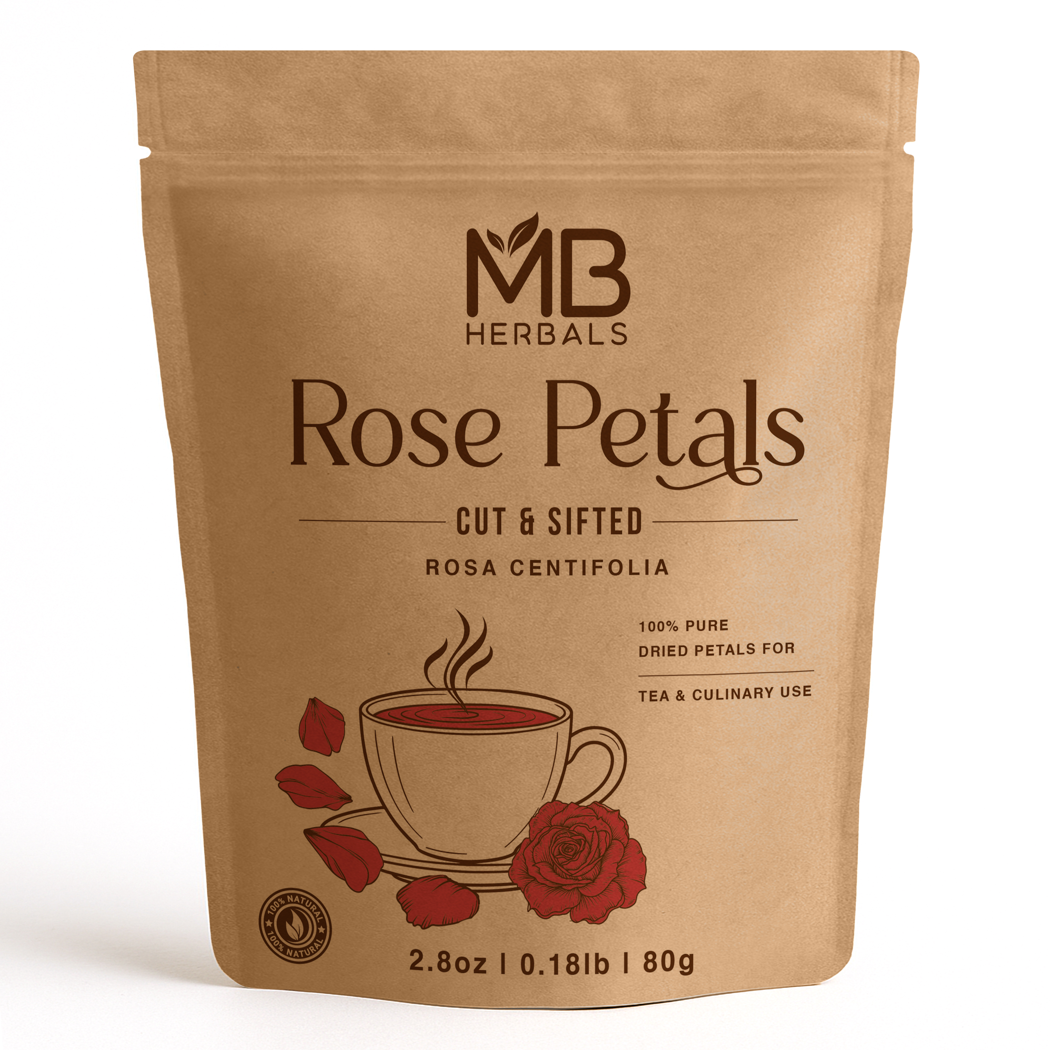 MB Herbals Rose Petals Cut & Sifted, Rosa Centifolia, 100% Pure Dried Petals for Tea & Culinary Use, 80g