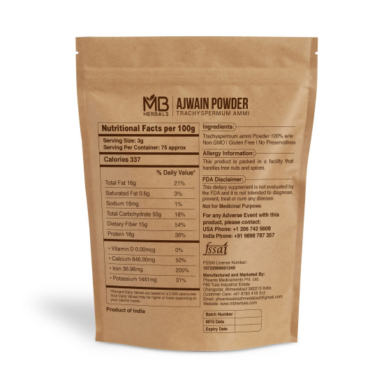 MB Herbals Ajwain Powder | Carom (Ajwain) Seed Powder 227g