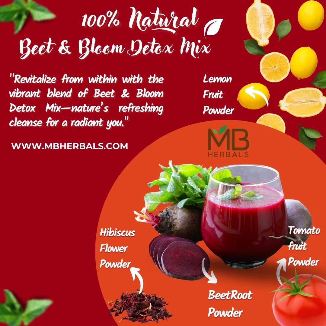 Ingredients: Detox powder mix (with ingredients : Beetroot, Hibiscus, Tomato, Lemon).